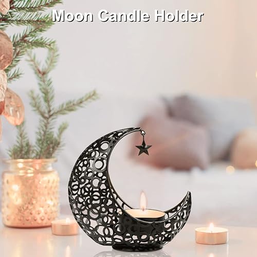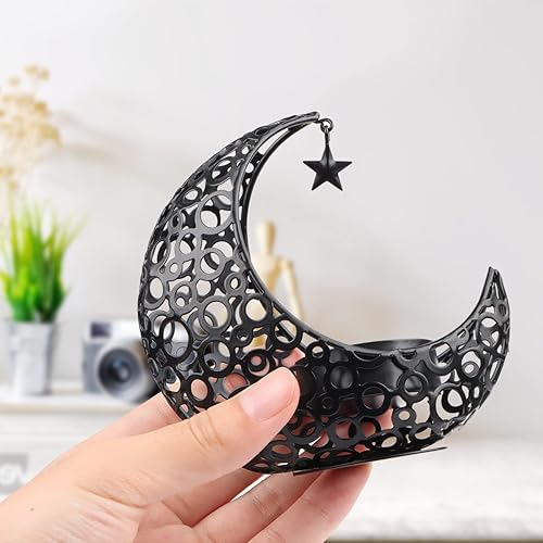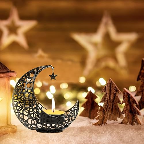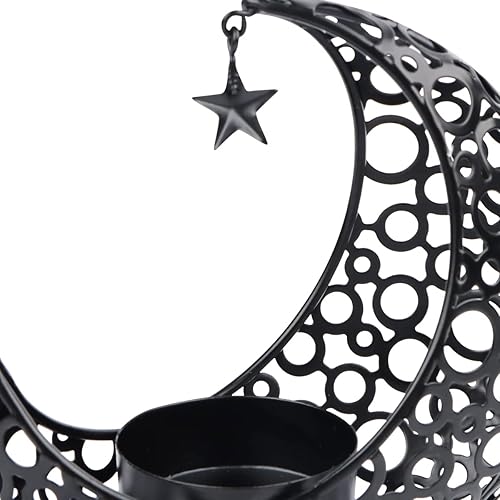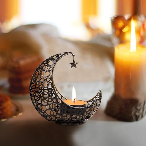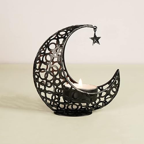 Encuryna Photophore en forme de lune - Lanterne - Décoration de table - Vintage - En métal - Pour Noël, barbecue, Saint-Valentin