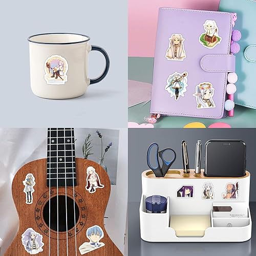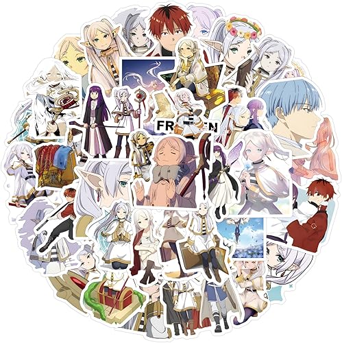 DAOWIN Lot de 50 autocollants Frieren en vinyle pour skateboard, guitare, ordinateur portable, bagages, fête d'anniversaire