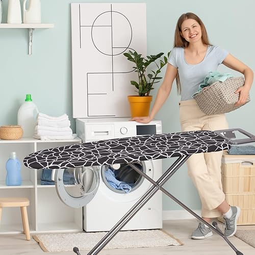 Umiin Grande housse de table à repasser, 150 x 55 cm, housses de table à repasser, élastiques et épaisses, avec dessus en coton et rembourrage en feutre de 6 mm, noir et blanc