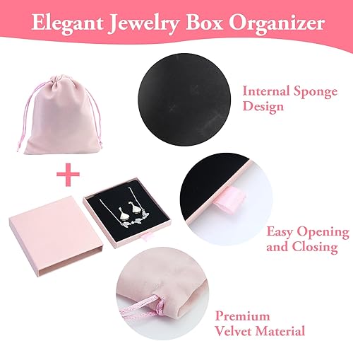 1 Pièces Rose Boîte-Cadeau de Bijoux avec Sac en Velours, Présentoir à Bijoux en Papier Boîte, Présentoir à Bijoux élégant pour Colliers, Boucles D'oreilles, Rangement de Bijoux (9 x 9 x 1,7 cm)