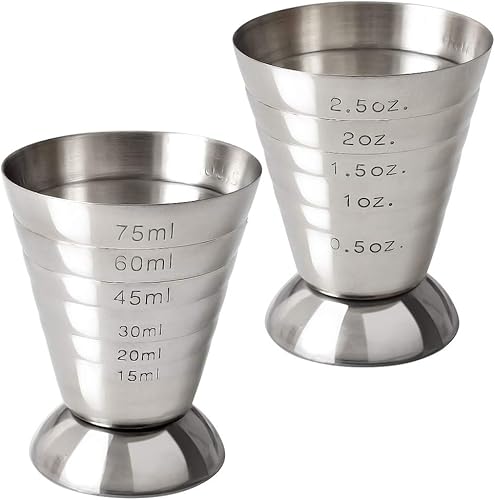 Cozihom Cocktail Jiggers en acier inoxydable, 2,5 oz, 75 ml, 5 cuillères à soupe, paquet de 2