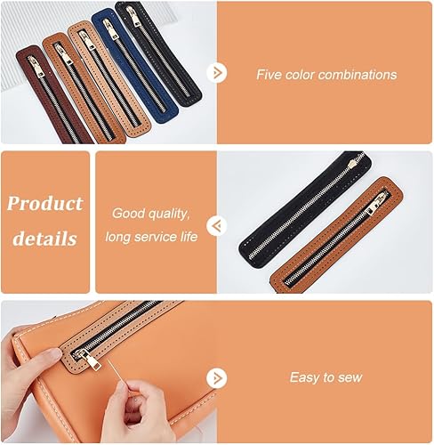 WADORN 5 Couleurs Fermeture à Glissière en Cuir PU, Cadres de Fermeture Éclair pour Sac à Main, Couture avec Trou, Fermeture Éclair Rectangulaire, Cadre Fixe pour Sac de Bricolage, 18x3.5 cm