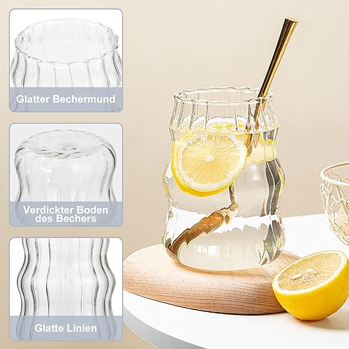 DENUOTOP Fancy - Lot de 2 verres à eau avec paille - 530 ml - Pour café glacé, latte macchiato, matcha, mojito, passe au lave-vaisselle