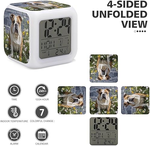 JTREWBV Réveil lumineux - Imprimé bouledogue amusant - Réveil de voyage à piles - Réveil portable pour voyage