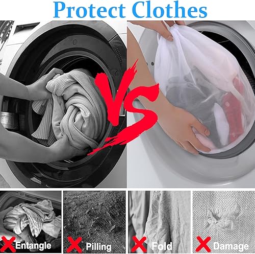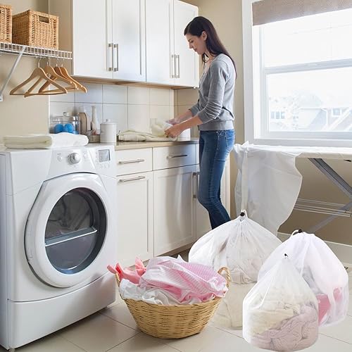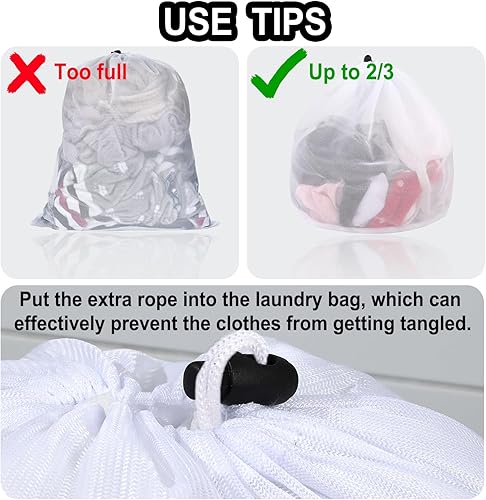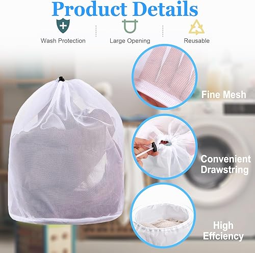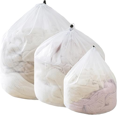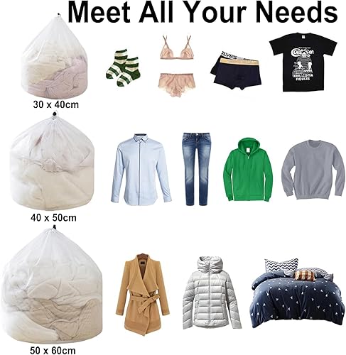 3 Pièces Filet Linge Machine à Laver, Sac de Lavage Portable avec Cordon de Serrage Sac Linge Réutilisable en Maille Fin pour Chemisier Sous-vêtements Soutien-gorge Chaussettes