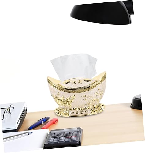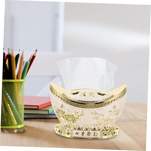 VOSAREA Distributeur De Mouchoirs Rond De Luxe Doré Et Blanc Boîte De Rangement pour Serviettes Dhôtel Étui De Rangement pour Décoration Intérieure