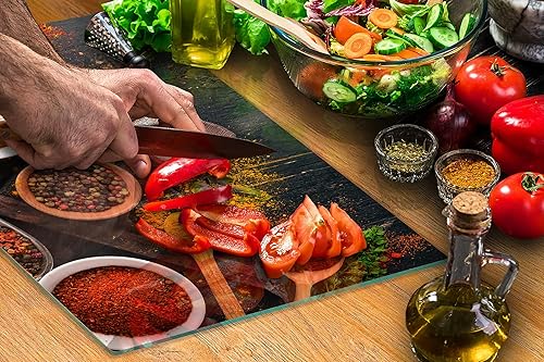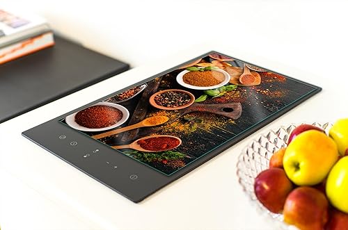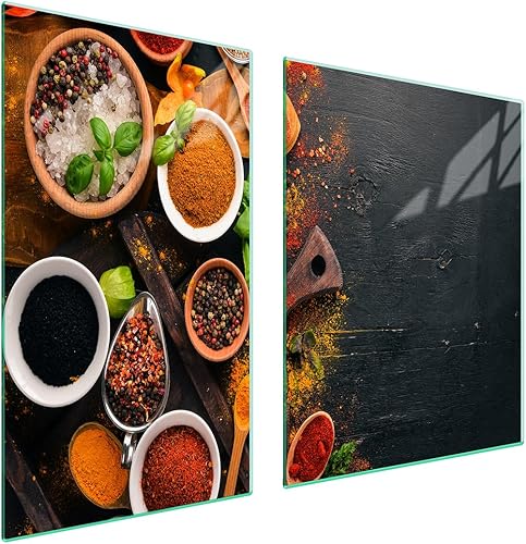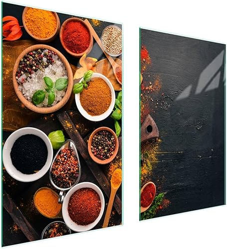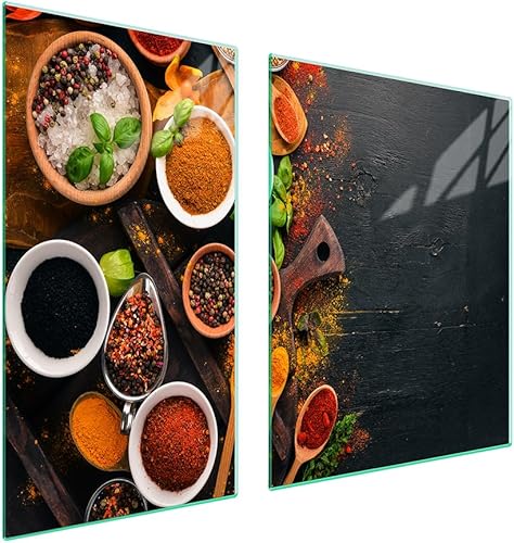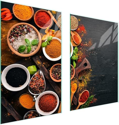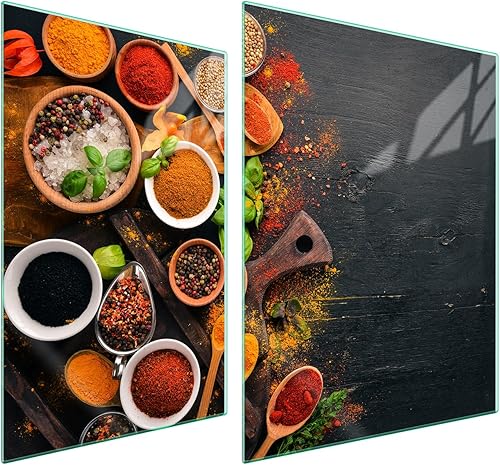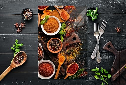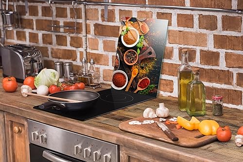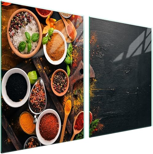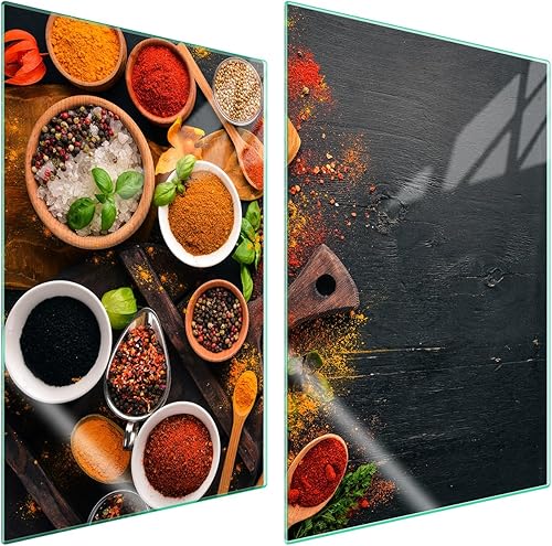 TMK ArtDeko Cache-plaque de cuisson 75 x 52 cm - 2 pièce - Protection contre les éclaboussures - Planche à découper - Épices