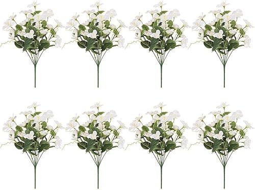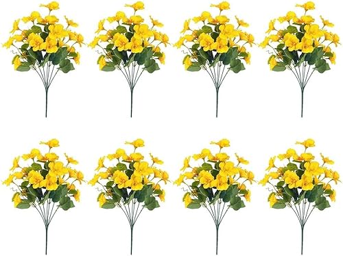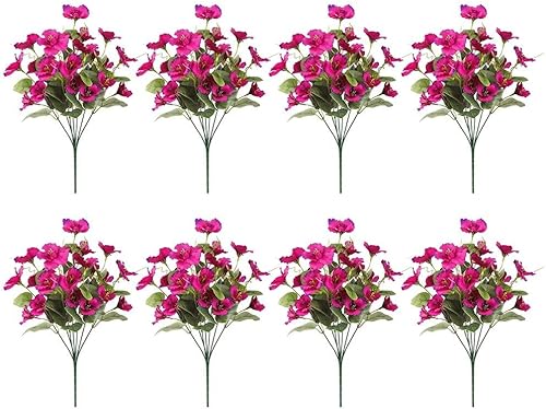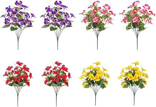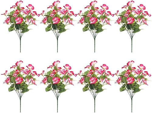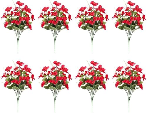 Lot de 8 fleurs d'hibiscus artificielles vibrantes à 5 branches colorées résistantes pour décoration de jardin et d'extérieur (rouge)
