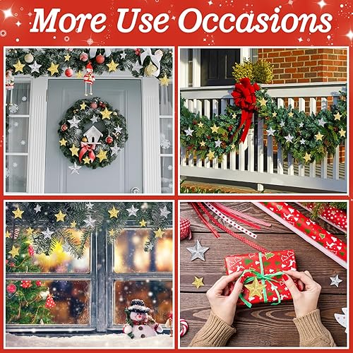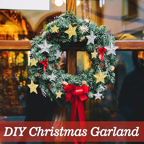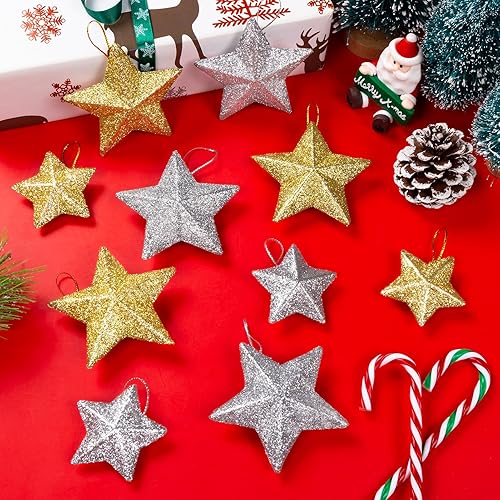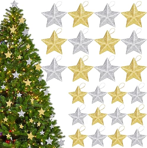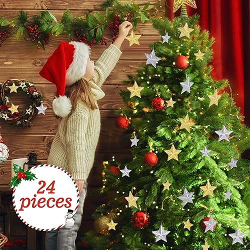 Kiiwah 24 Pièces Paillette Étoile de Décoration Noel Sapin, Petites Étoiles Ornement pour Deco Sapin de Noel, Or, Argent Pendentif Noel pour DIY Couronne de Noël, Cheminée, Fenêtre