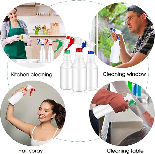 Lot de 18 flacons pulvérisateurs vides rechargeables en plastique de 473,6 g pour solution de nettoyage, anti-fuite, avec buse réglable, mode brume/flux pour plantes, animaux domestiques, cuisine et