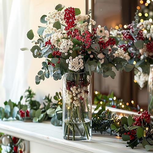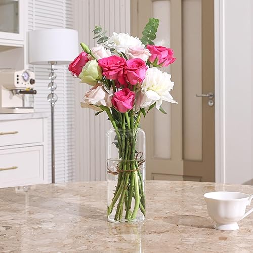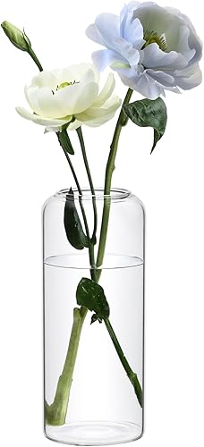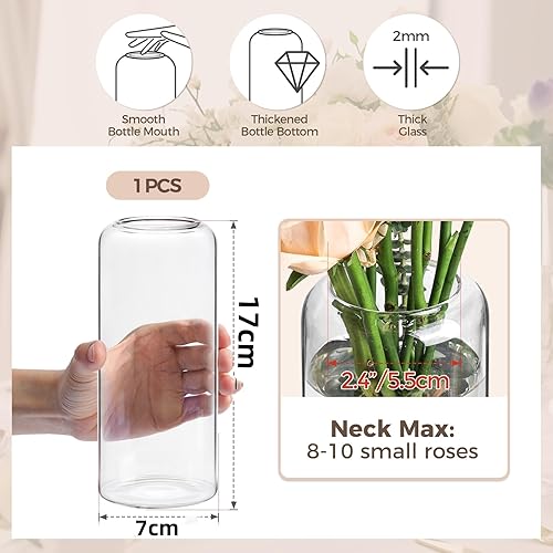 Transparent en Verre pour Fleurs, Vase Cylindrique en Verre Transparent pour Décoration, Vase à Fleurs Élégant pour Salon, Mariage, Bureau et Centre de Table,pour Bouquet et Arrangement Floral (17cm)