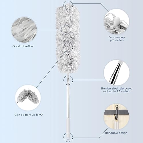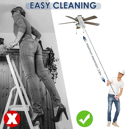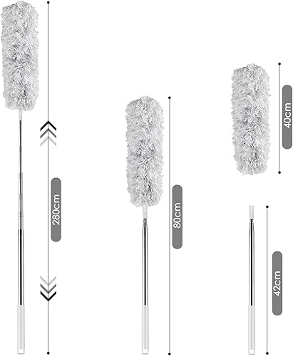Uootach Plumeau Poussière, Plumeau Télescopique, Jusqu'à 2,8 m de Long Collecteur de poussière en Microfibre rétractable Extra Long, Balai Pliable Lavable, pour Coins, plafonds, Toiles d'araignée