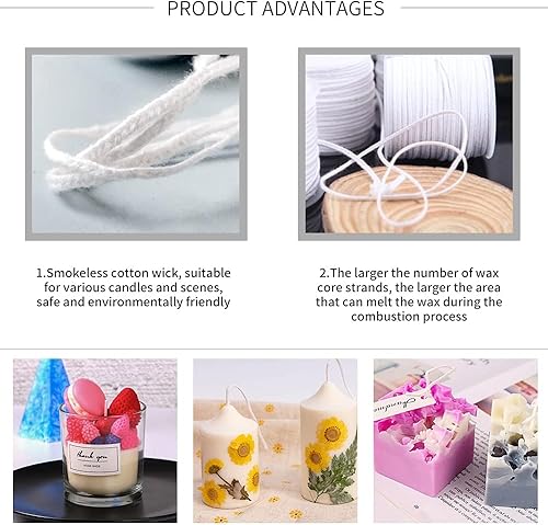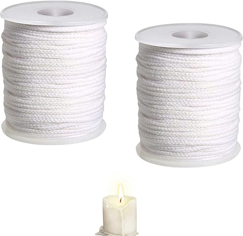YOUYIKE Mèche de Bougie Coton,2 Rouleau Mèche de Bougie en Coton Tressé, 61M Mèche de Bougie Naturelle Coton,Meche Ronde Bougie,pour Lampes à Huile et Bougies,la Fabrication de Bougies Bricolage