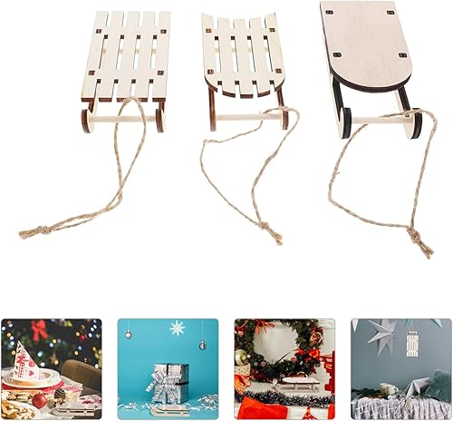 Operitacx 9 Pièces Ornements De Traîneau De Noël Miniature Traîneaux en Bois Inachevés Modèle Mini Traîneaux De Table De Ski Noël Arbre De Décoration Suspendue