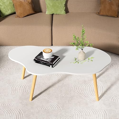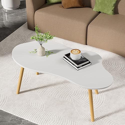 toxaaiwr Table basse moderne du milieu du siècle, petite table basse blanche, table ovale en bois en forme de nuage, pour petit espace, salon, chambre à coucher, minimaliste, 78,7 x 40,9 x 40,6 cm (L