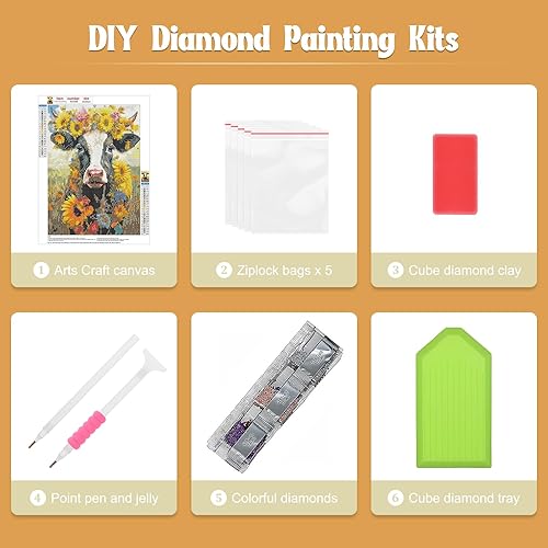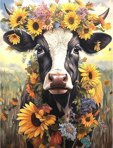 NAIMOER Vache Peinture Diamant Adulte, Diamond Painting Animaux Complet, Diamond Painting Vache Kit Enfants Diamant Strass Point de Croix Cristal Painting pour Murale Décor 30x40cm