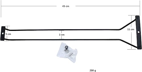 Abcsea 1 Pièce Noir Porte-Verre à Vin sous Meuble, Porte-Verres à Pied Suspendu, Support de Verre à Vin, Porte-Verres à Vin, Stemware Rack, 45 cm 1 Rangée