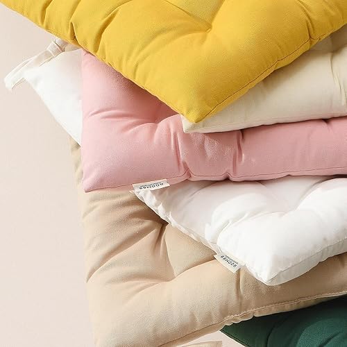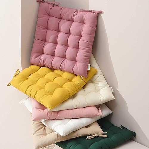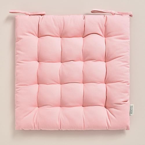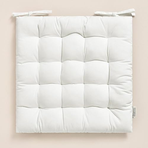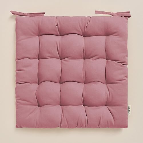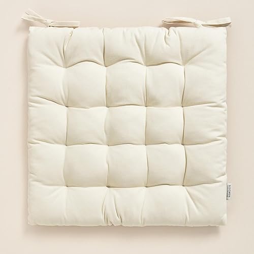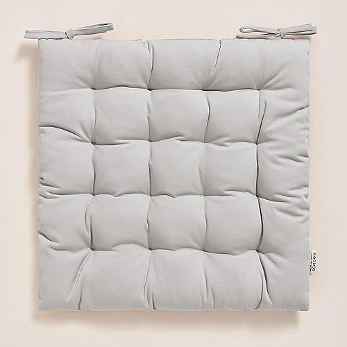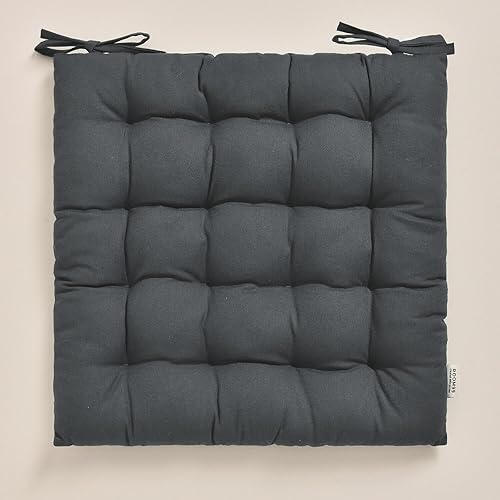 ROOM99 Coussins de Chaise avec Rubans Carmen 40 x 40 x 4,5 cm Coussin d'assise rembourré, Galette de Chaise Interieur avec Attaches, antidérapants pour siège Le Coton Gris foncé, 1 pièce