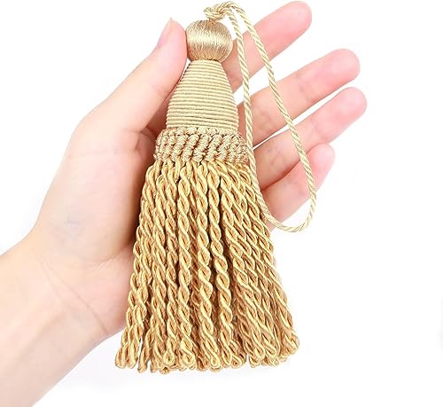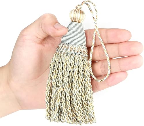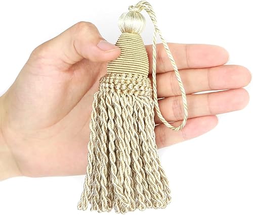 Fenghuangwu Lot de 4 grands pompons de 15,2 cm avec boucle de 10,9 cm élégants faits à la main (mélange de beige)