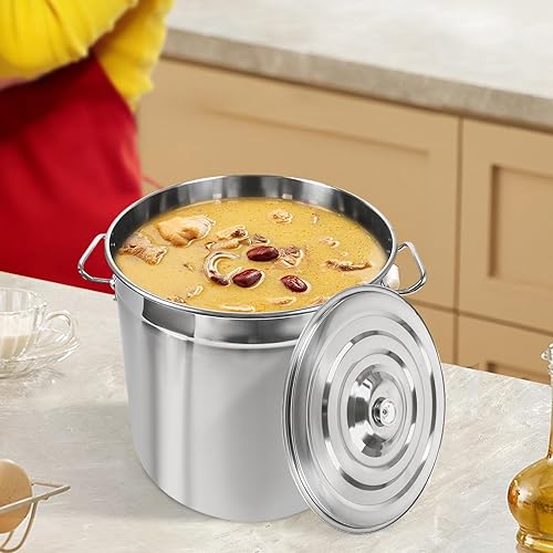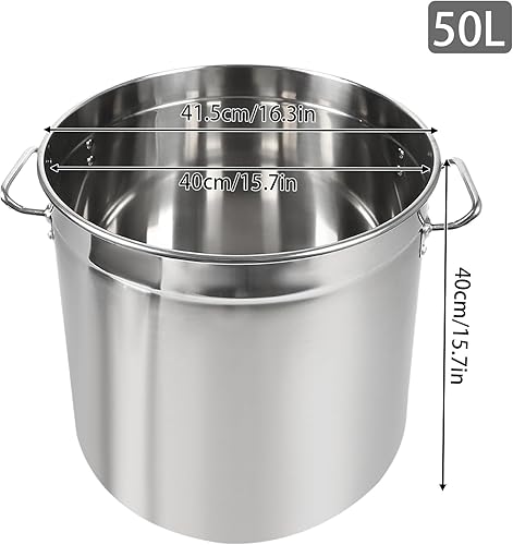 Fichiouy Marmite en acier inoxydable avec couvercle - 50 l - Grand volume - Diamètre : 40 cm - Pour soupes, ragoûts et fritures - Pour la restauration et la maison
