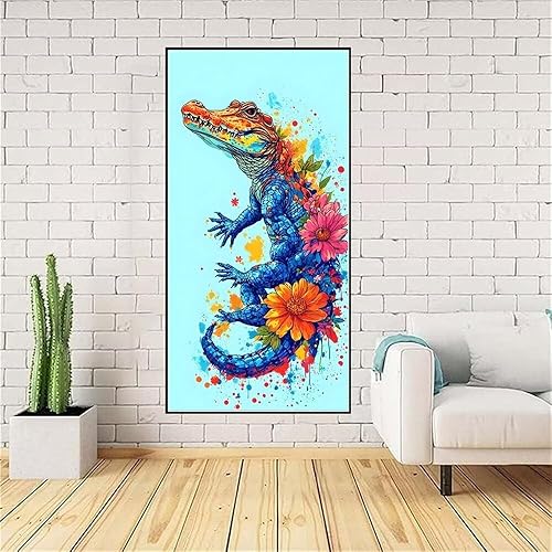 Diamond Painting Kit Complet Couleur Crocodile Diamond Painting Adulte Enfant Débutant Artisanat Set, 5D DIY Full Drill Cristal Broderie Art Set, pour Décoratio D'intérieur Cadeaux 25x50cm q-521