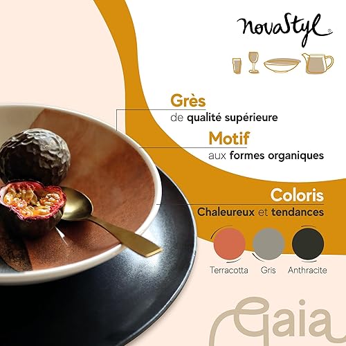 NOVASTYL - Lot 6 assiettes creuses gaia 20cm en grès - 2614684