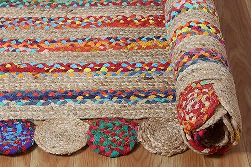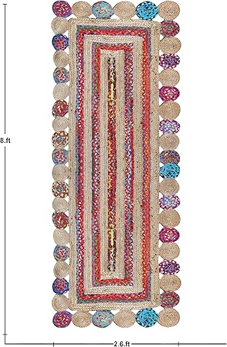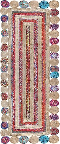 CASAVANI Chindi – Tapis de couloir festonné en jute et coton 61 x 243 cm, motif Cape Code multicolore, tapis tressé épais de 0,7 cm, tapis de couloir à tissage plat pour intérieur et extérieur,