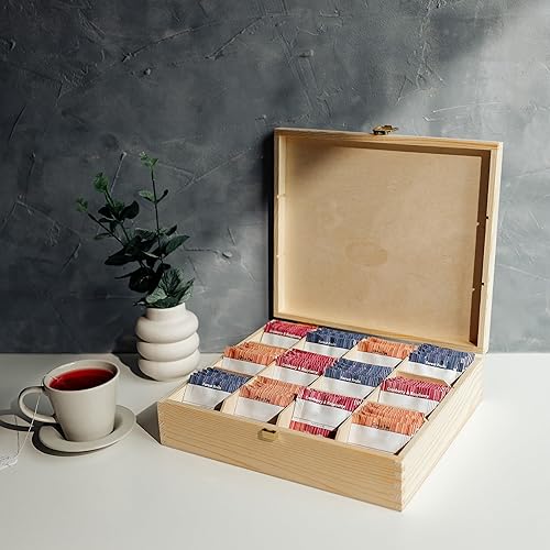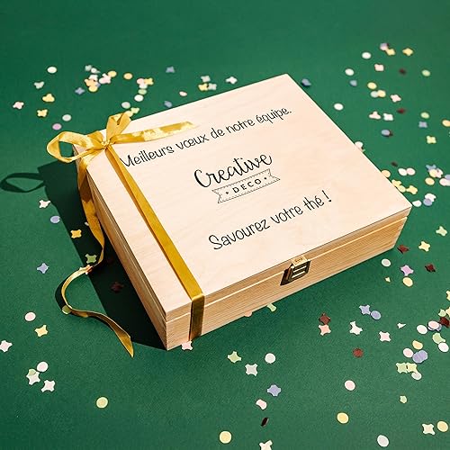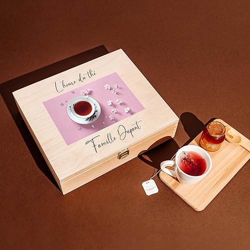 Creative Deco Grande Boîte à Thé Bois | Cadeau Personnalisé Texte Souhaité + Photo | Boîte à Thé 12 compartiments | Votre Propre Photo | Coffret Cadeau pour Femme, Homme | Amateur de Thé