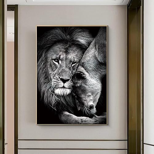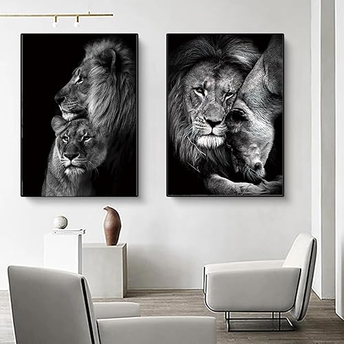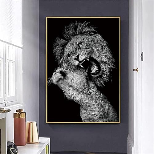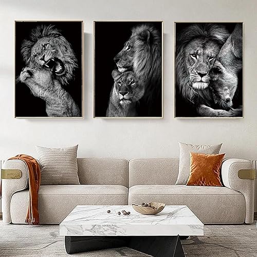 KAIDAARTLH Images sur toile de lions en noir et blanc, affiches d'animaux avec impression d'art, pour le salon et la chambre, sans cadre(A,3x30x40cm)