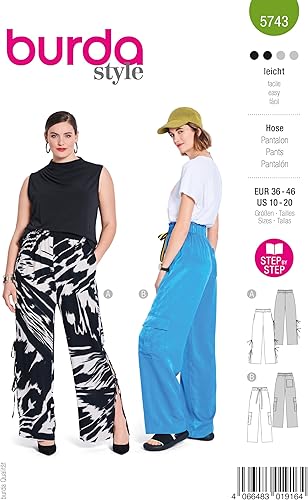 Burda style 5743 Patron de couture pour femme Pantalon avec fentes latérales hautes et pantalons cargo avec poches XL Taille 36-46
