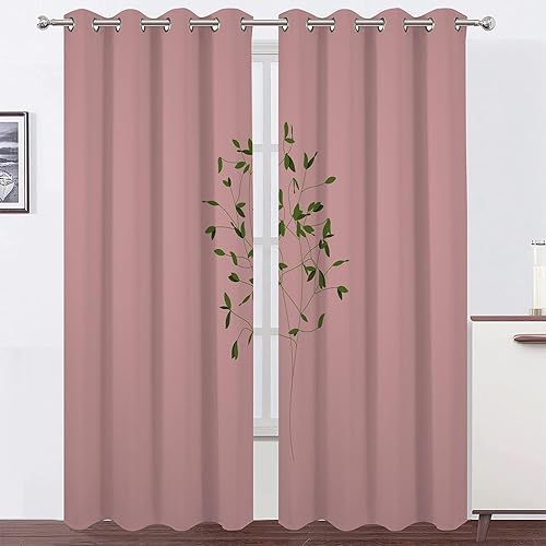 Rideau Occultant Plantes Roses Thermiques à Oeillets Simplicité Rideau Fenetre Imprimé pour Salon Chambre, Lot de 2 Rideaux et Draperies Intérieurs, 70x145 cm &D2852