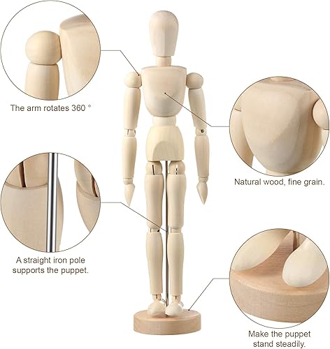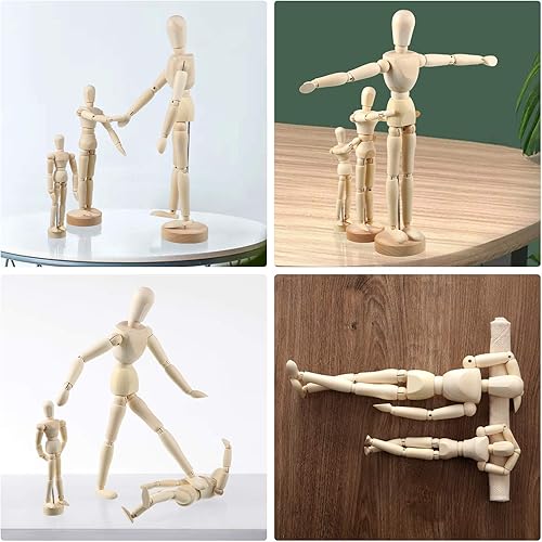 3 Pièces Modèle de Mannequin d'Artiste en Bois Articulé Avec Support pour Décoration de Maison