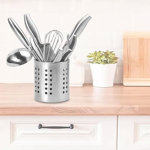 Sumsoctober Support en acier inoxydable à séchage rapide, organiseur de couverts, égouttoir à couverts pour évier ventilé, rangement d'évier de cuisine avec trous de vidange (10 x 12,5 cm)