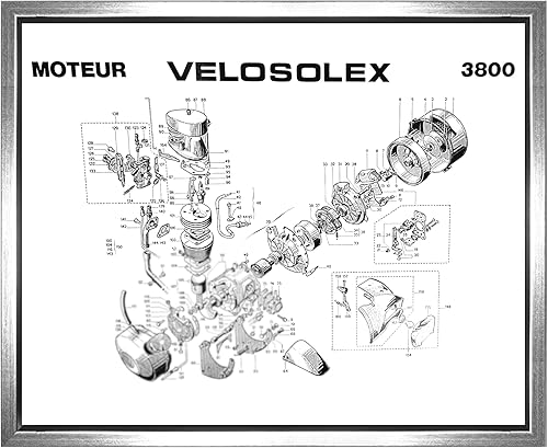 cyclingcolors Nomenclature compatible avec adaptable solex 3800 moteur Affiche éclaté 400x300mm velosolex Vintage