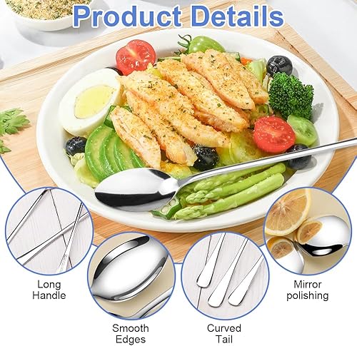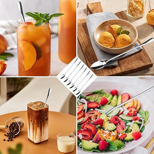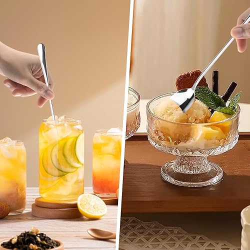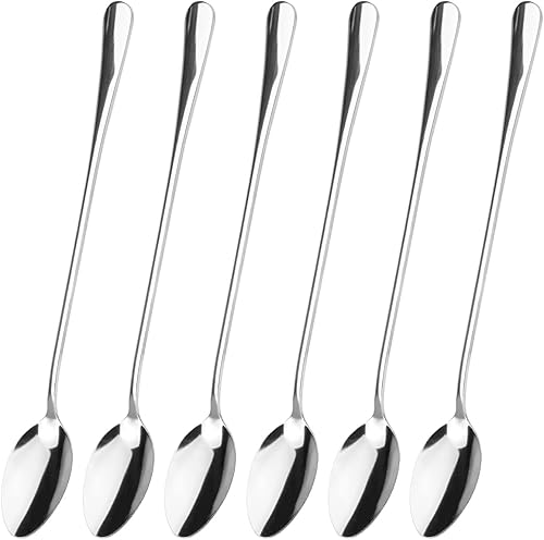 Lot de 6 Cuillères à Café en Acier Inoxydable à Long Manche,19.5 cm Petite Cuillère à Dessert,Cuillere Longue,Cuillère à Café Longue,Petites Cuillères pour Latte Café, Expresso, Chocolat Chaud