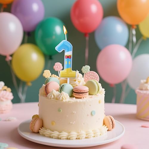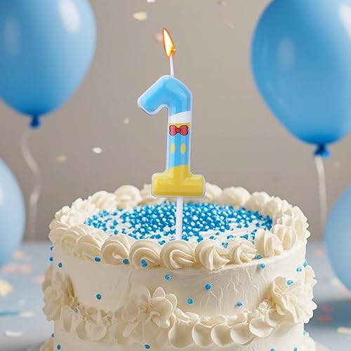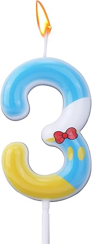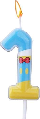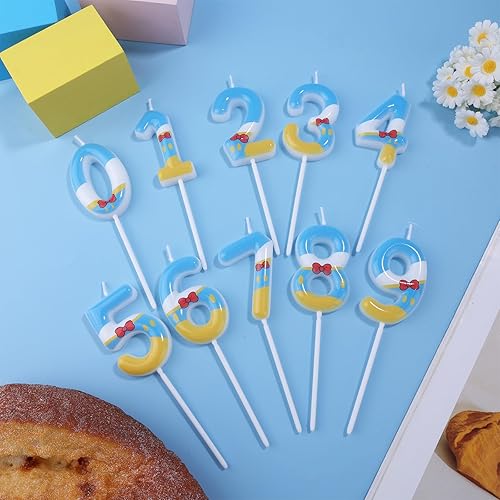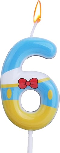 Bougies Numérotées Bleu Jaune Blanc, Décoration de Gâteau d'Anniversaire Thème Dessin Animé Bougie Numérotée pour Fête Fournitures de Célébration (6)