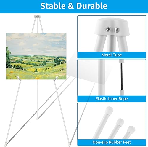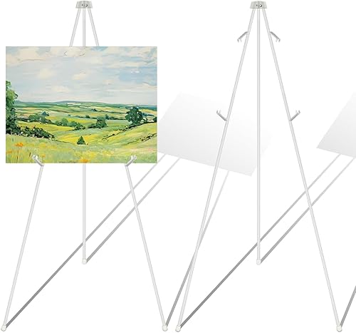 MUXHEL Lot de 2 Chevalet Mariage, Chevalet Peinture, 160cm Chevalet Mariage Ajustable, Chevalet Peinture Ajustable, Chevalet Télescopique de Studio, Chevalet de Présentation Pliant - Blanc