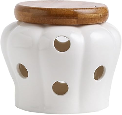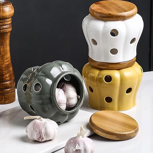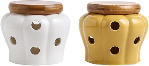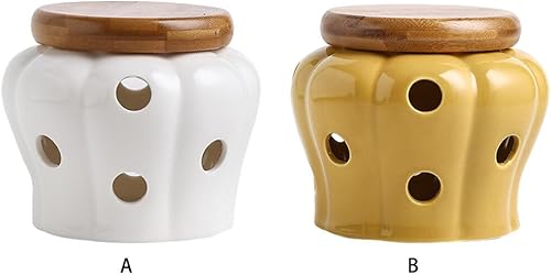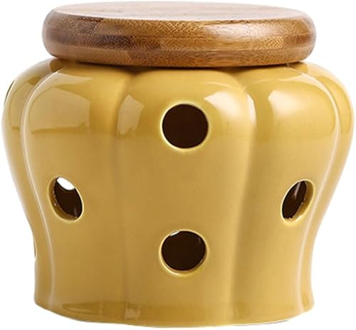 VUIUYOIES Pot de Stockage d'ail en céramique Durable, Organisateur de Cuisine Frais et Savoureux, Pot à ail en céramique avec Couvercle, Jaune