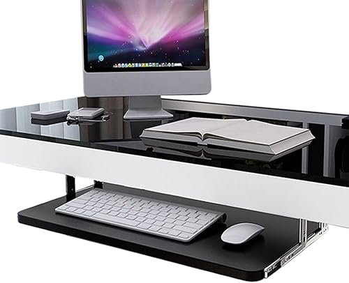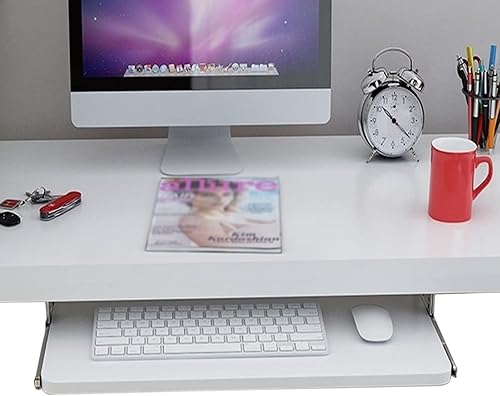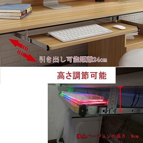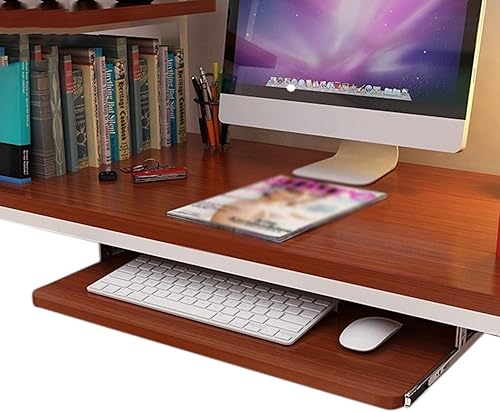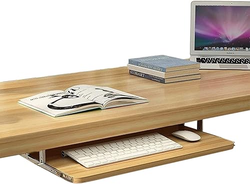Rallonge de Bureau pour Clavier et Souris - Plateau de Rangement pour Clavier - Bois Naturel - avec Rails coulissants à roulement à Billes de 14 Pouces - Coulissement Facile et Silencieux