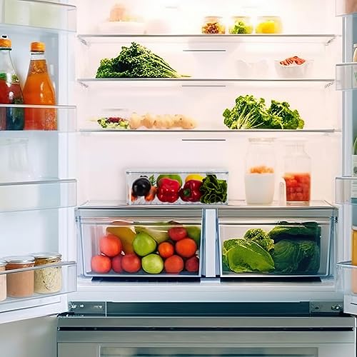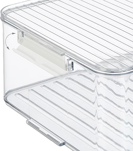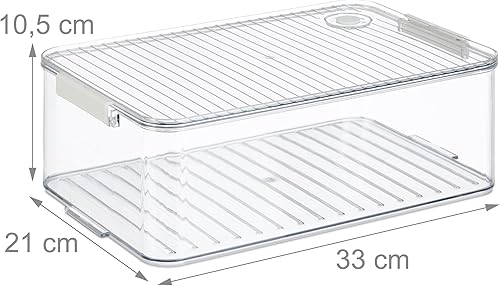 Relaxdays Organiseur de frigo, lot 2, avec Couvercle et Date, H x L x P : 10,5 x 21 x 33 cm, Transparent