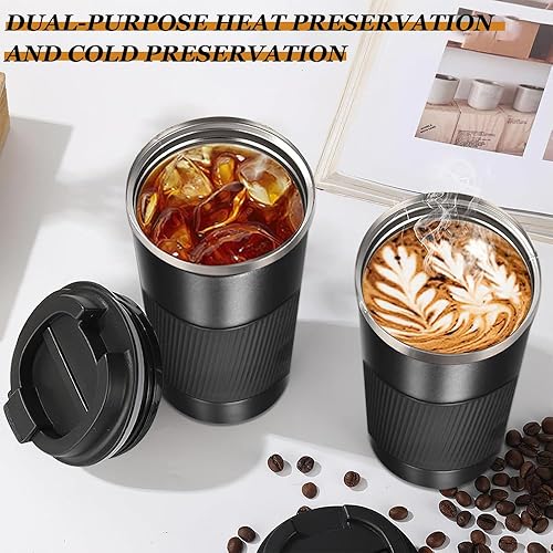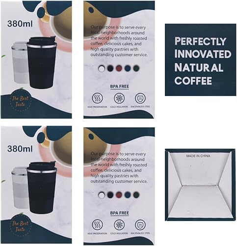 KUIRUNRX® Thermos Café, Mug Isotherme Cafe 380ML Noir, Tasse de Voiture avec Couvercle, Café Étanche Mug de Voyage pour Café Chaud et Froid, Lait et Thé, Garder au Chaud Jusqu'à 6 Heures