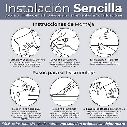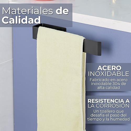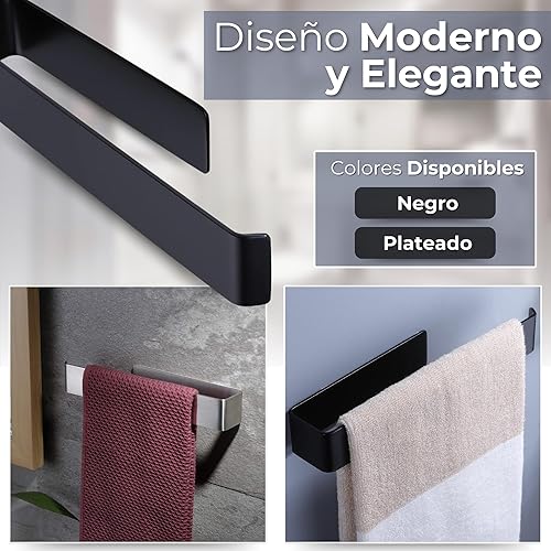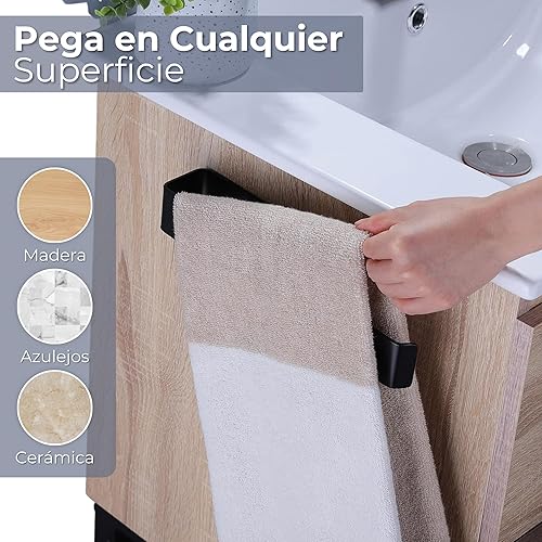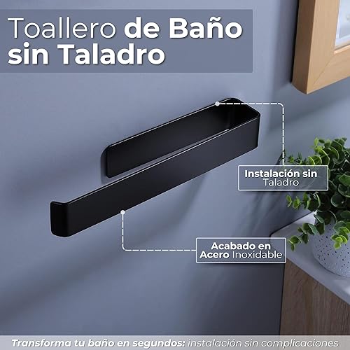 Porte-serviettes de salle de bain sans perçage, acier inoxydable 304, porte-serviettes adhésif noir mat, 26 cm