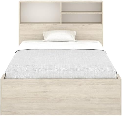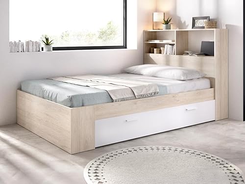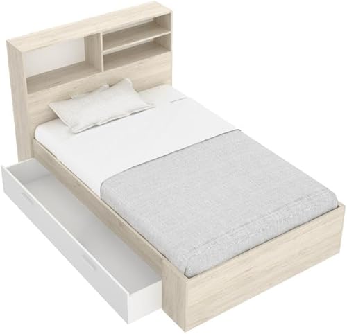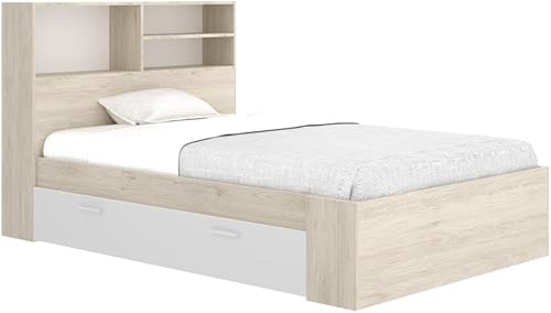Vente-unique - Lit 120 x 190 cm avec rangements - Coloris : Naturel et Blanc + Sommier - VARDIEL
