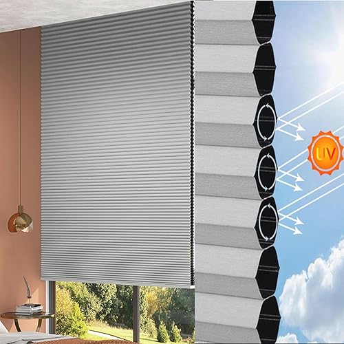YHBZ Stores Nid d'abeille,Stores cellulaires rétractables sans Fil,Rideaux occultant plissés pour fenêtres,Rideau d'ombrage à Isolation Solaire,pour Chambre à Coucher,Cuisine,A-90x120cm/35.4 * 47.2in