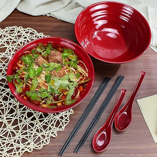 Bol Ramen, Capacité 1032 ml Bol à Soupe Japonais avec Cuillère et Baguettes, pour Pâtes Udon Pho Nouilles Asiatiques, Lave-vaisselle (4 PCS)
