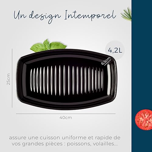 ESPRIT DE CUISINE - Plat À Four Poisson En Céramique - Cuisson Homogène - Émail Résistant Aux Rayures - Facile À Nettoyer - Made in France - 4,2L - 40x25x6,5cm Extérieur - Fusain Mat Noir