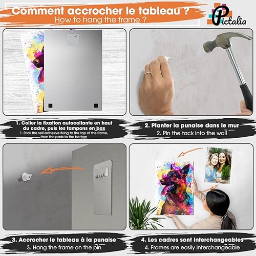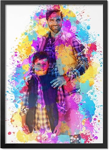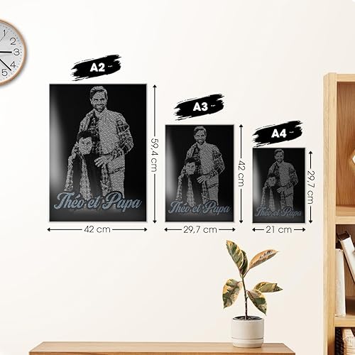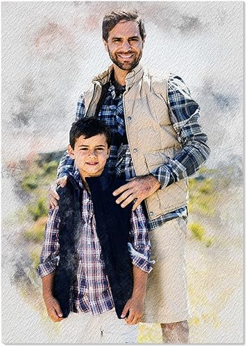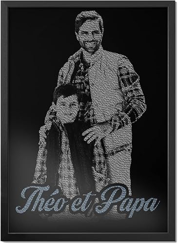 Pictalia - Cadre Personnalisé - Transformez votre photo en Aquarelle, photo et texte, cadeau Papa, Fête des Pères, cadeau Homme, Format A4, A3, A2, toile, papier photo, texte personnalisable