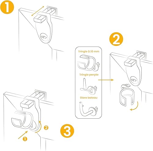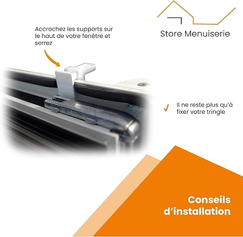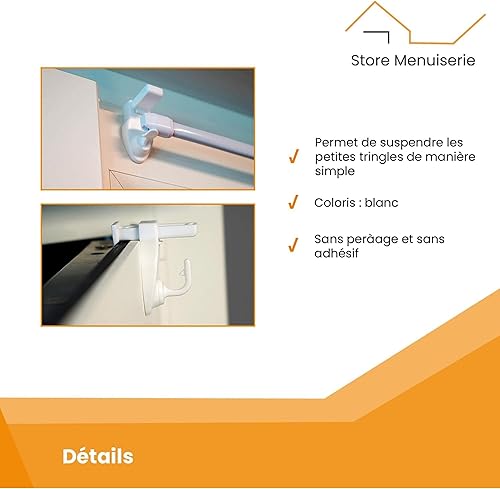 Lot de 2 Supports clic sans perçage pour Tringle à Rideau - Crochets à pression sans adhésif pour barres à rideaux légers et voilages - Fixation de tige amovible pour fenêtre - Coloris transparent