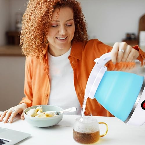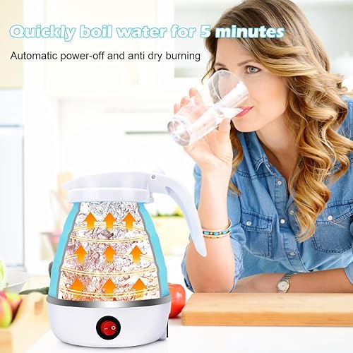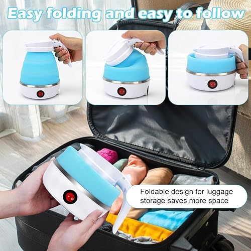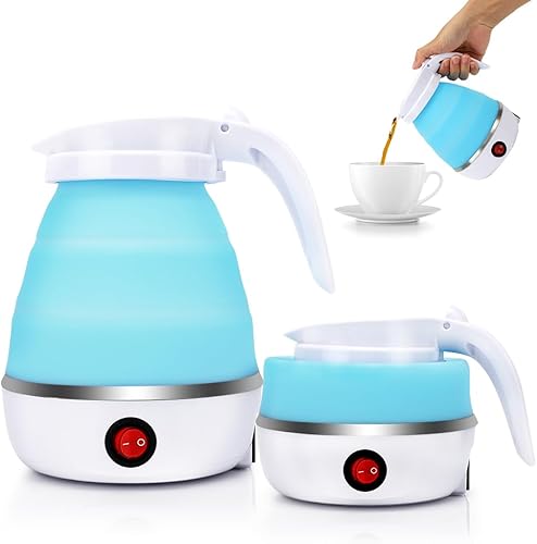 Bouilloire Pliable de Voyage, 600ml Bouilloire de Voyage Portable pour Le Camping, Le Voyage, l'extérieur, Bleu