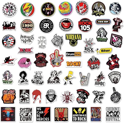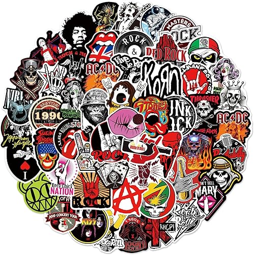Yoimckay 104 Pièces Autocollants Rock, Esthétiques Stickers, DIY Décorations Autocollants, Stickers Vinyle Imperméables pour Ordinateur Portable, Voitures, Moto, Vélo, Planche à roulettes, Valise